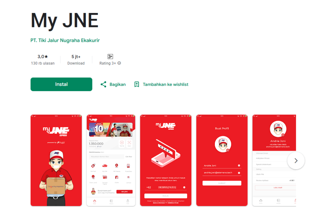 - Unduh aplikasi MyJNE di Google Play Store atau App Store.