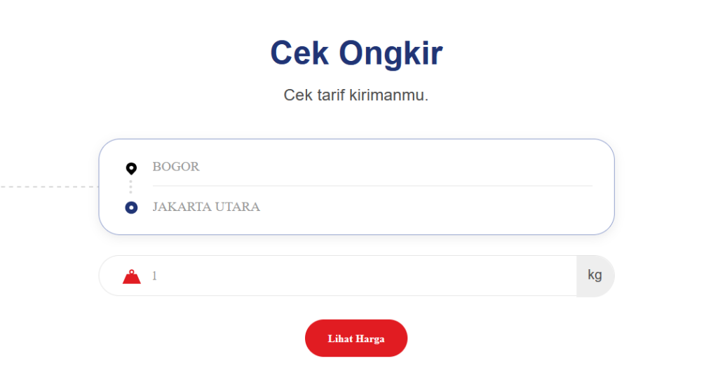 - Masukkan detail asal, tujuan, dan berat barang. Hasilnya akan langsung keluar dalam hitungan detik.