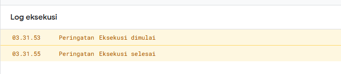 Jika berhasil, log pasti menampilkan hasil eksekusi dari script, pastikan tidak ada yang error.